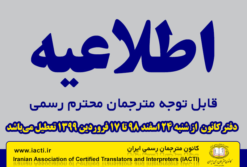 هیئت مدیره کانون مترجمان رسمی ایران از همه مترجمان رسمی دعوت می کند، خود را برای شرکت در این اجتماع سالیانه آماده کنند.