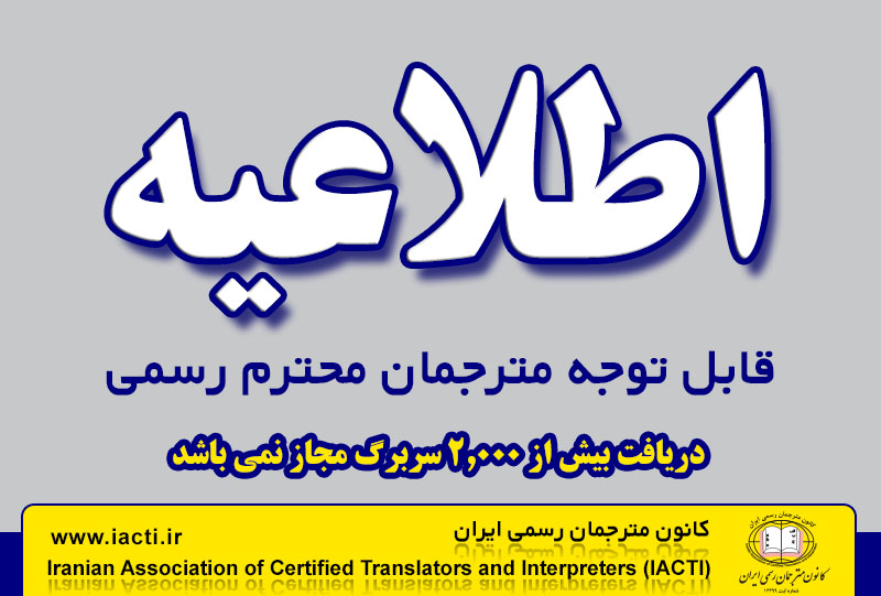 بنا به دستور دکتر جهانی دریافت بیش از 2.000 سربرگ برای هیچ کدام از مترجمان رسمی مجاز نمی باشد